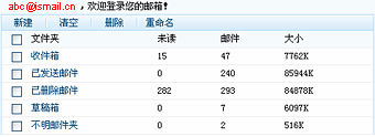 单击页面左侧上方的“文件夹”,进入文件夹页,您可以新建或者修改文件夹,从而对您的邮件进行分类管理。 ![]() |